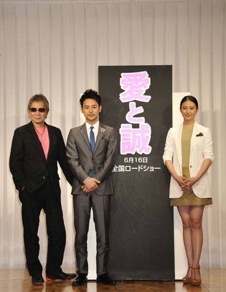 俳優の妻夫木聡、女優の武井咲が19日、都内で行われた映画「愛と誠」完成報告会見に出席した。