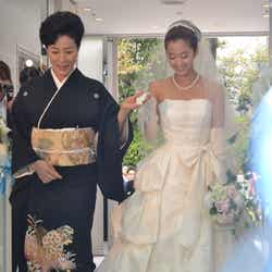 バージンロードを歩いた感想について錦戸亮は、「人のは見たことあったけど案外短いもんやな」とコメント。優香も「すごく緊張していますがこんなステキなドレスを着ることができて本当に幸せです」とニッコリ笑顔で答えた。