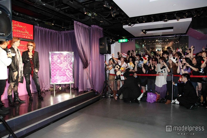 ロックバンドX JAPAN・YOSHIKIが26日(現地時間)、香港市内ピーク・タワーにある等身大ワックスフィギュア展示アトラクション「マダム・タッソー蝋人形館(Madame Tussauds Hong Kong)」で行われた、自身のワックスフィギアお披露目会見にスペシャルゲストとして登場した。