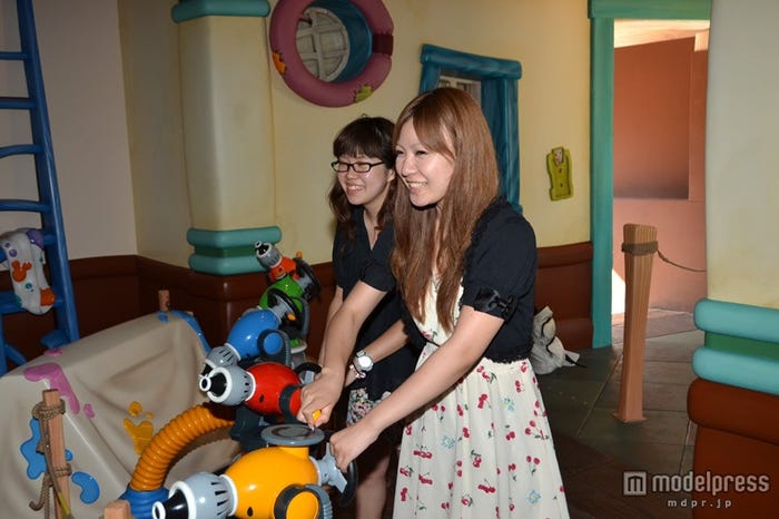 今回、協力してくれた読者モデルも「ペンキを噴射して、模様が変わっていくのが、とても楽しくて面白かった」と大満足。さらに「アトラクションの外に置いてあったモニュメントにも色々仕掛けがあってテンション上がりました」と待ち時間も計算された演出に大興奮の様子だった。(モデルプレス)