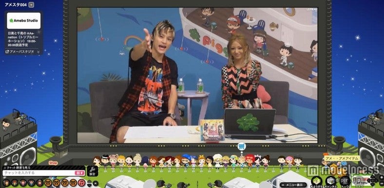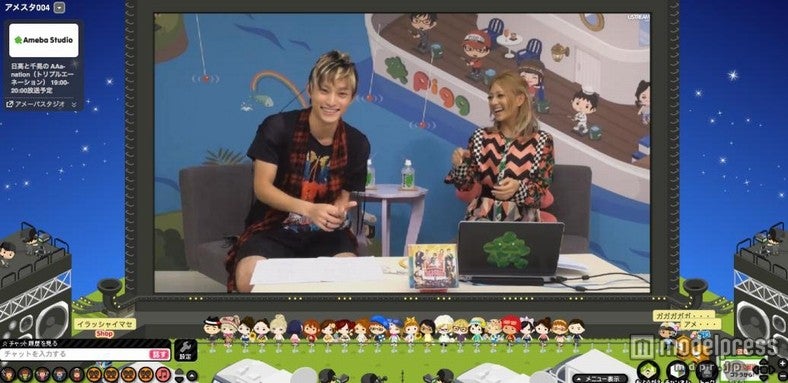 今放送は8月25日・26日に味の素スタジアムで開催される「a-nation stadium fes. Charge Go! ウイダーinゼリー」の26日の全公演内容を「アメーバピグ」で生中継することを記念したスペシャル番組。伊藤千晃がアーティストになるきっかけとなった浜崎あゆみの「SURREAL」や「SEASONS」、日高光啓が毎年a-nationの客席で汗だくになって踊ってしまうというTRFの「EZ DO DANCE」や「survival dAnce ~no no cry more~」など、過去の貴重な映像を盛りだくさんに振り返りながら、今年の出演アーティストや見どころを紹介した。