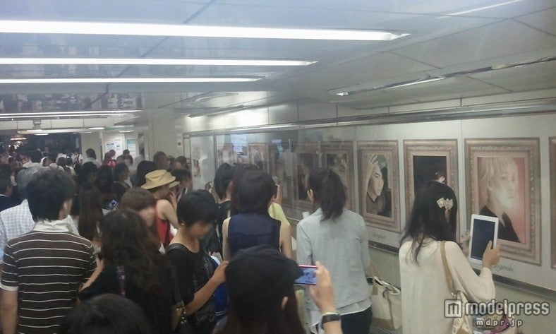 ポスターが公開された24日は、SUPER JUNIORにとって日本初となるファンイベント「E.L.F-JAPAN FANMEETING 2012」(横浜・赤レンガパーク特設野外ステージ)の開催日当日。イベント終了後には横浜から渋谷までファンが押し寄せ、終電間際の時間帯にもかかわらず大きなにぎわいを見せた。