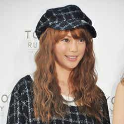 「mastermind JAPAN(マスターマインド・ジャパン)」のセットアップ&ハットというクールなコーディネートで登場した蛯原友里は「今年流行りのツイードで、少しゆるっとしたスタイル。こんなにハードな感じは今までなかったので、新たなワールドに挑戦しようかなと思ってます」とファッションを解説。先日入籍した上戸彩&HIROカップルについては「毎日楽しい時間をつくって、二人笑顔でいられれば幸せなんじゃないですかね」と結婚生活の先輩として助言も。自身のおめでたについては「まだですね」とコメントした。