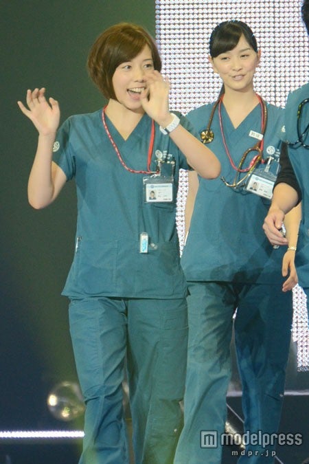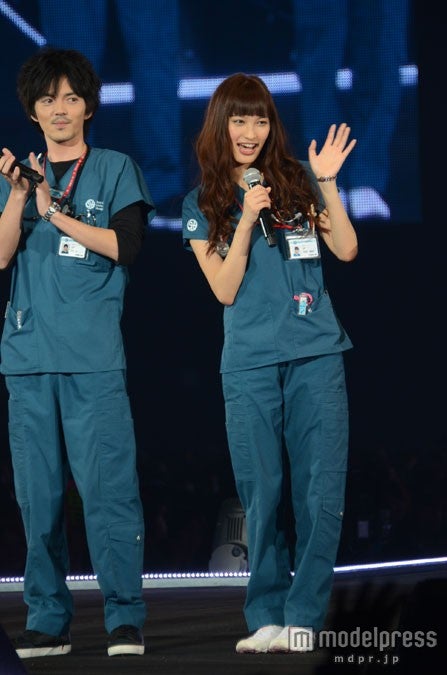 ステージに現れた仲里依紗、増田貴久、林遣都、大政絢、石橋杏奈の5人は、ブルーの医療服姿で和気あいあいムードでランウェイをウォーキング。笑顔で手を振り観客の声援に応えた。