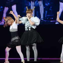 腰にパンダのぬいぐるみをつけたキュートなモノトーン衣装で登場したきゃりーは、10月17日発売の3rdシングル「ファッションモンスター」、1stシングル「つけまつける」の2曲をパフォーマンス。