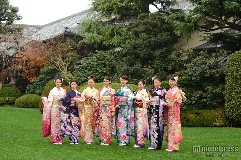 武井咲、剛力彩芽、忽那汐里らオスカープロモーション所属の女優陣が4日、東京・明治記念館にて恒例の晴れ着撮影会を行った。