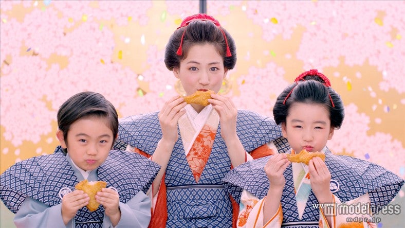 新CMは振袖に裃(かみしも)姿の綾瀬が、「みなみなさまの~」と両手を差し出す場面からスタートし、綾瀬を挟んで両脇に着物姿の男の子と女の子が正座、口上のようなスタイルでテレビの前の視聴者に向かって新年の挨拶。その後、綾瀬、男の子、女の子が3人揃って美味しそうにオリジナルチキンを食べるシーンが続き、最後は口上風に「そ~ぐ~っど!(So good!)」の掛け声で締めくくるといった内容となる。(モデルプレス)