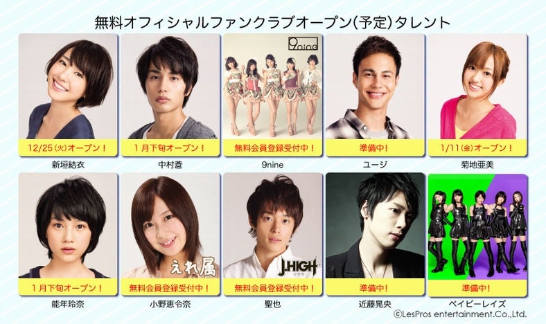 年明け1月からはアイドリング!!!の菊地亜美、NHK連続テレビ小説「あまちゃん」ヒロインの女優・能年玲奈、俳優の中村蒼、タレントのユージなど、所属タレントが続々と無料ファンクラブを開設する。(モデルプレス)