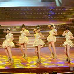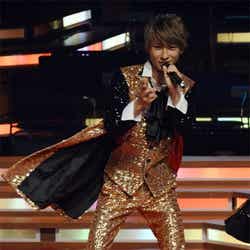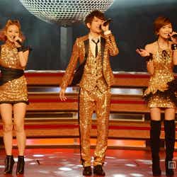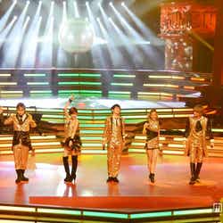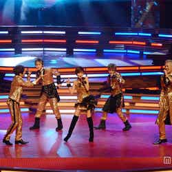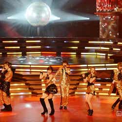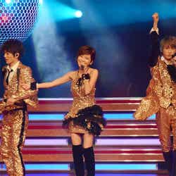 一方、スタイリッシュなゴールド×ブラックコーデで登場した7人組パフォーマンスグループAAA(トリプル・エー)は、キレのあるダンスとともに爽快なダンスナンバー「777~We can sing a song!~」を歌唱、躍動感溢れるパフォーマンスで観客を魅了した。