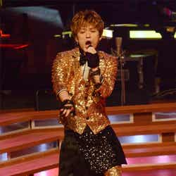 「特別賞」を受賞したきゃりーは、ピンクの蝶ネクタイを付けたエメラルドグリーンのセットアップ衣装で登場。29日深夜、自身のTwitterで急性声帯炎であることを明かしていた彼女は、司会を務める安住紳一郎アナウンサーに「喉の調子は大丈夫ですか?」と問われると、声帯炎で声をかすれさせながらも「大丈夫です」と返答。体調不良を感じさせないパワフルなステージで会場を沸かせ、プロ魂を見せつけた。