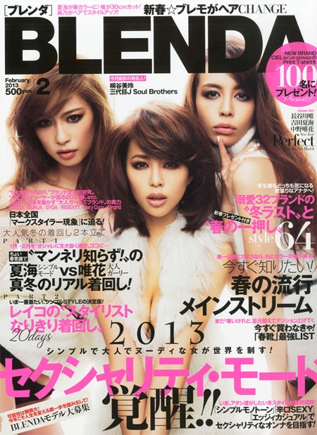 特集「it girl」にて、バイカラーシャツにレザーパンツ、スタッズについたブーティを合わせ、“最高にクールな桐谷美玲”を表現。ガ-リーなイメージを一変し、クールな「BLENDA」風コーデに身を包んだ桐谷は、「すごく好きです」と絶賛した。さらに誌面では「今年はレザーものが気になっていたのでボトムスはレザー、シンプルにさらっとシャツを合わせたらかっこいいかなって」とみんなで相談して決めたというコーディネートのポイントを解説している。