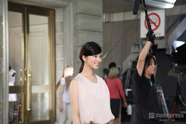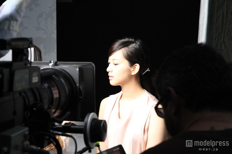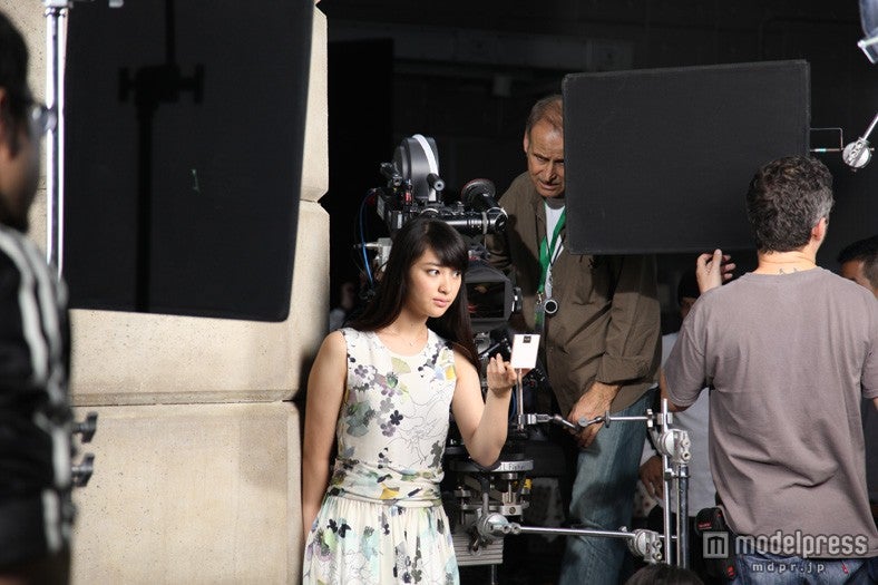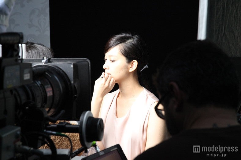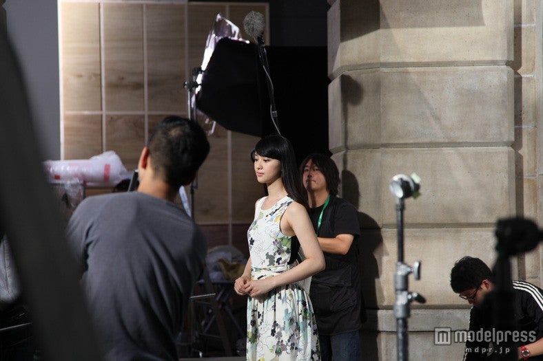 2日間に分けて行われたという撮影では、街並みを再現した大掛かりなセットを用意。武井は相手役の男性とも息ぴったりに演じ、まるで恋愛映画さながらの雰囲気で進められた。