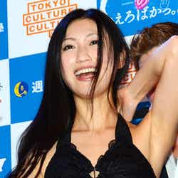 男性のみならず女性からも人気が急上昇中の壇蜜。この日も多数の女性ファンが会場に訪れ「女性に嫌われる覚悟でこの仕事を始めたので、嬉しい誤算です。だってグラビアでTフロントをワイングラスで隠している女性を好きになれますか?」とにっこり。