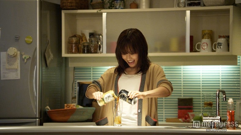 お酒のCMに初出演となった前田だが、部屋のセットで撮影したこともあり、リラックスした表情で撮影に臨んだ。前田は、「目をつぶって、味わって」「飲んだ後、ちょっと遠い目で」など、監督とこまめに打ち合わせをしながら何カットもトライ。「麦とホップ 金か?黒か?篇」の撮影では、勢いよくハーフ&ハーフを作るという難しい内容だったが、スタッフ一同が見守る中、さらりと成功させ、その器用さに監督はうなるばかりだった。(モデルプレス)