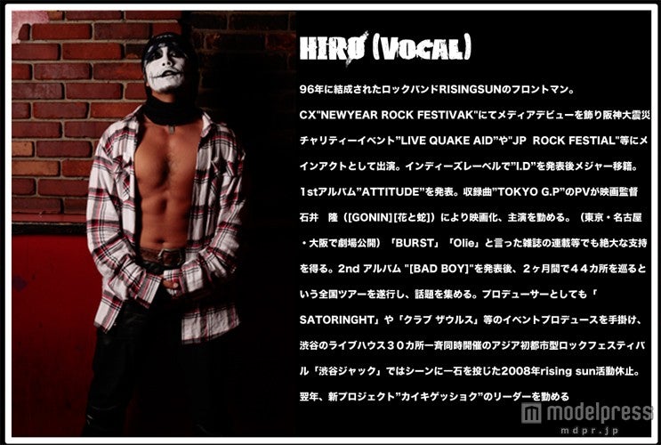 ニューヨーク滞在中に聞いたハードコアロックに衝撃を受け、 帰国後1996年にロックバンド・RISING SUNを結成。その後、2009年に音楽集団カイキゲッショクに形を変え、ヴォーカル兼リーダーとして活躍している。