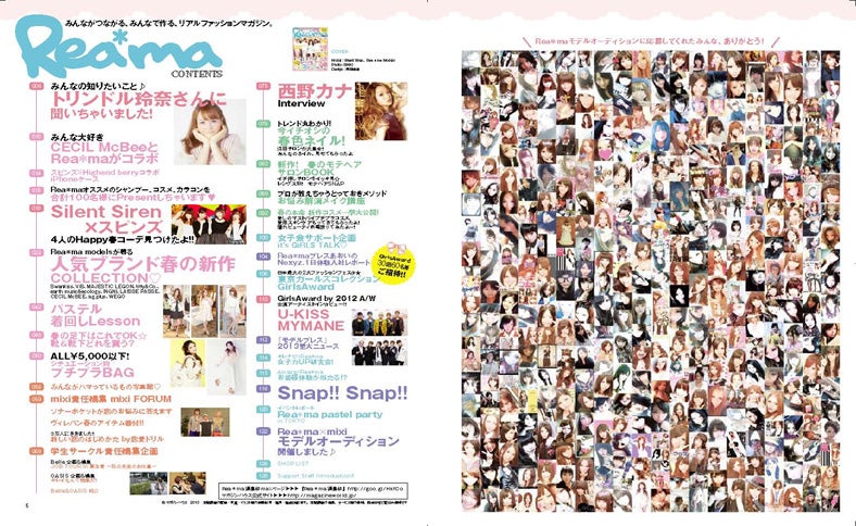 「みんながつながる、みんなで作る、リアルファッションマガジン。」をテーマにした同誌では、毎月1回以上ログインするアクティブユーザーを1200万人以上も抱えるmixiが提供する「mixiページ」内に編集部を設置。SNSを通じ、企画や情報はもちろん、通じてモデル、編集、カメラマン、スタイリスト、ヘア&メイクスタッフを募集するなど、ユーザーとともに雑誌をつくり上げるという新たな試みがついに形になった。
