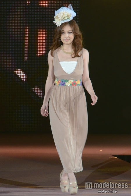 昨年12月の第1子出産後初の公の場となった熊田は、ボディラインをふんわりと隠すヌーディーカラーのマキシ丈ワンピースでランウェイをウォーキング。昨年3月に同所で行われた「東京ランウェイ2012 S/S」では堂々のビキニ姿で注目を集めたが、この日は露出の少ない衣装で美バストを封印。母となり、より磨かれた大人の女性の色気を漂わせた。