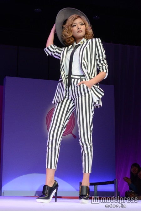 モノクロのボーダーのセットアップというクールなスタイルで登場したローラは、「メンズライクな格好でショーをやったことがないからよかったよ」と感想を述べ、「美容は大好き!週1、2回はトリートメントに行くよ。あとは、美容液や保湿をたっぷり塗るの。そうすると肌がモッチモチになるよ」と美の秘訣を明かした。