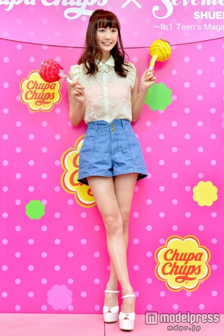 モデルの鈴木友菜が13日、東京・渋谷109前のイベントスペースで行われた森永製菓「チュッパチャプスサンプリングイベント」に出席した。