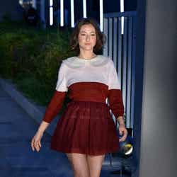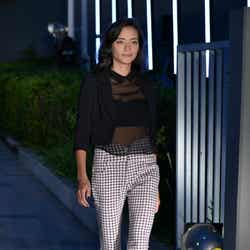 イベント2日目は「sweet」のファッションショー。トップバッターを飾った紗栄子は、早くも秋を感じさせるボルドーのシースルーセットアップで登場。ガーリーなコーディネートながらも、透け素材から覗く素肌見せで大人の色気をアピールしていた。
