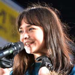 トークショーでは、「野外のショーと聞いていたので最近はゲリラ豪雨も多いし皆さんが来てくれるか不安だったけど、たくさんの方が来てくれて嬉しいです」とニッコリ。「sweet」の撮影エピソードを聞かれると「先日ロンドンに行ったんですけどサクサク撮影が終わったので日光浴したりノッティングヒルを見に行きました。今日もロンドンでできた友達が見に来てくれてます」と嬉しそうに話した。