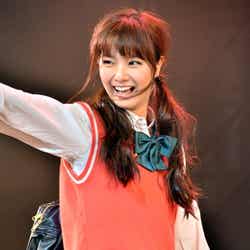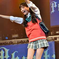 ステージでは「緊張しました。『誰?』ってなると思ったんですけど、温かい声援があって嬉しかったです」とにっこり。制服の着こなしのアドバイスを求められると「スカートの長さにコツがあります。ひざ上13cmが一番細く見えるんですよ。今日の私もひざ上13cmです」とこだわりを明かした。