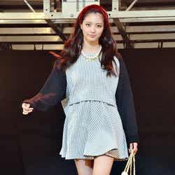さらに新川は同イベントで行われた「スピンズファッションショー」にも登場。ワインレッドのヘアバンドに千鳥柄のミニワンピースでスラっと美脚をアピール。制服姿とは打って変わって少し大人っぽさをまとった姿に、観客からは再び声援が沸き起こった。