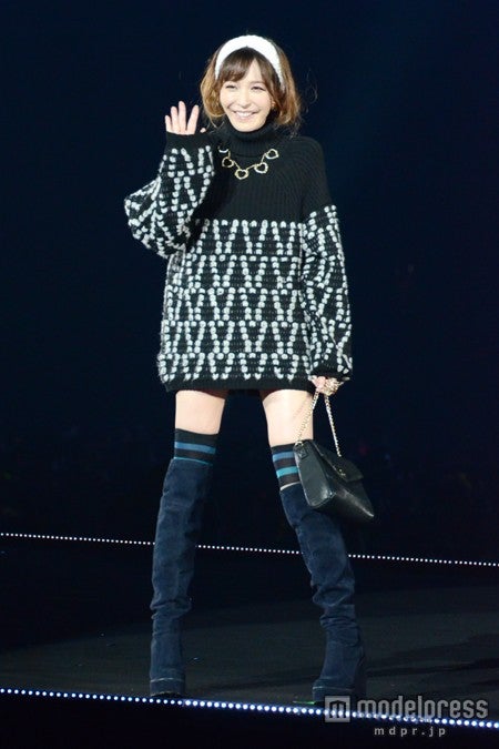 「dazzlin」ステージのトップバッターを飾った藤井は、モノトーンのざっくりとしたニットワンピースにボーダーのニーハイソックスを合わせたコーディネートで登場。“絶対領域”を露わに3万人の観客の視線を釘付けにした。