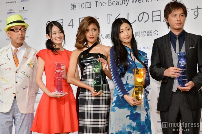 「The Beauty Week Award」とは、NPO法人美容振興協議会が、毎年9月4日の“くしの日”を中心とした一週間を「Beauty Week」と位置づけ、その年に輝く女性(女優・モデル・タレント・アスリートなど)を選出し表彰するというもの。今年は「CHANGE」というテーマで、シーンに合わせ自身を変えていき、世間に大きく影響を与える人物が選定された。(モデルプレス)