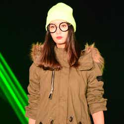「Bershka」ステージのトップバッターとして登場した菜々緒は、蛍光イエローのニットキャップとミリタリーコートを合わせたカジュアルなコーディネートで圧巻の美脚を堂々披露。ロイドメガネをアクセントにした個性的なスタイルに仕上げており、これまでのイメージから大胆チェンジ。新たな魅力を開花させ、約3万人の観客を熱狂させた。