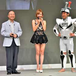 ブラックの花柄ミニワンピースから美脚を披露した水沢。はじめスギちゃんとふたりで登場し、「孫くんにまだ会ったことなくて」と会う前にも関わらずフレンドリーな発言。スギちゃんも思わず「失礼でしょ!」とツッコミを入れたが、物ともせずに「孫くんのこと一方的に好き!」と続け、会場を沸かせた。