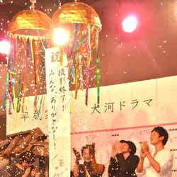 綾瀬は、涙を流しながら「1年間あっという間で、終わりに近づくにつれて、もっともっと撮影したいなと思っていました。八重の作品を通して、スタッフや共演者みんなで力を合わせていいものを作ろうと思っていました。そして愛情の深さを日々実感できました」と挨拶。「もの作りの素晴らしさを改めて感じさせてもらいました」と撮影を振り返った。