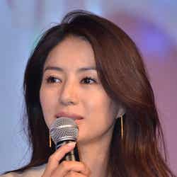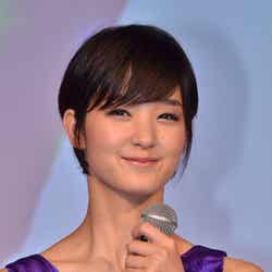 パープルのワンピースをまとった剛力は、10月4日からスタートする新CMについて問われると「今回のCMは、他にも出演者がいます」と含みを持たせてニッコリ。井川も「ちょっとおとぎばなしのような雰囲気になっています」と紹介した。