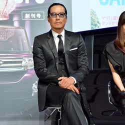 菅野は、ブラックのドレスに大ぶりのアクセサリーを合わせた大人スタイルで登場。このほか、新CM「TANTO CUSTOM」編に出演する俳優の豊川悦司、綾野剛、「TANTO」編に出演する青木崇高、石倉三郎も会見に登壇した。