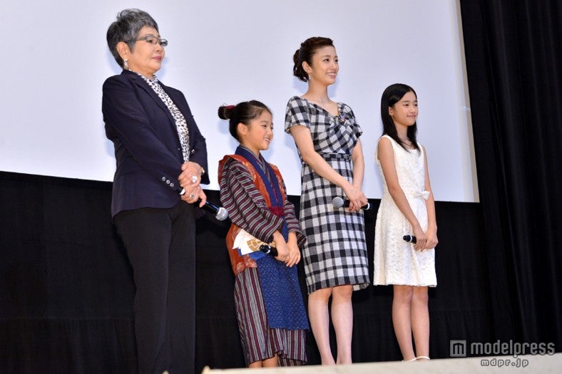 女優の上戸彩が12日、都内で行われた映画「おしん」初日舞台挨拶に、主演の濱田ここね、女優の泉ピン子、井頭愛海とともに登壇した。