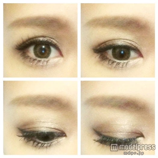 ・ラインはタレハネ!4でアイラインはいったんタレて、二重の終わり部分をゴールにハネます。