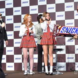 ロシアのデュオt.A.T.u.(タトゥー)が7年ぶりに来日。17日、都内で行われた「スニッカーズ新CM発表会」に、お笑いタレントのコージー冨田、アーティストの内田裕也とともに出席した。