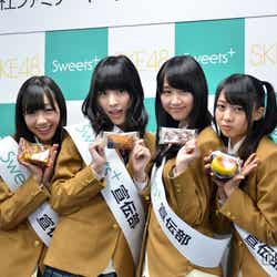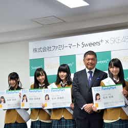 SKE48が、ファミリーマートの「Sweets+宣伝部員」に就任し、松井珠理奈、松井玲奈らが21日、都内で会見を行った。
