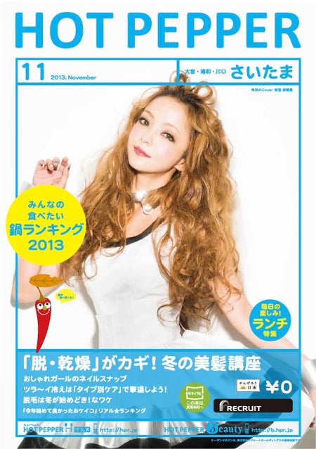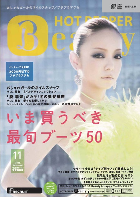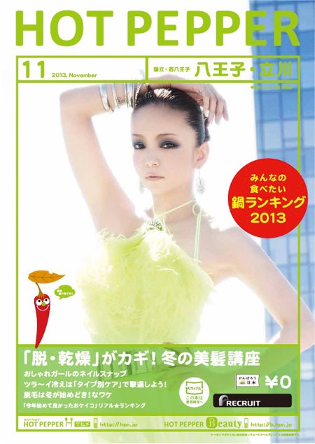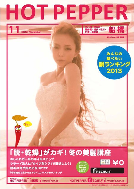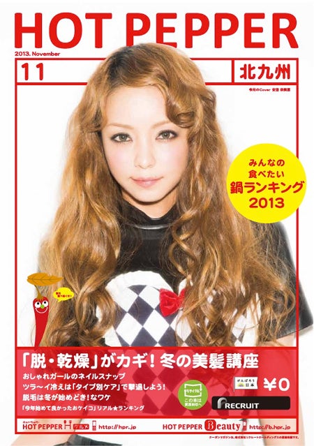 アーティストの安室奈美恵が、フリーマガジン「ホットペッパービューティー」とのコラボレーション企画として、10月25日から全国で配布される「ホットペッパービューティー11月号」及び「ホットペッパー11月号」の表紙をジャックすることがわかった。