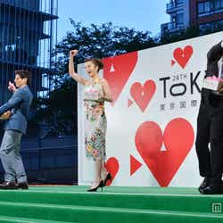 花柄のタイトなロングドレスで登場した上戸は、「お寒い中ありがとうございます。私もとても寒いです(笑)。風邪引かないように帰って下さい」と冗談交じりに挨拶。今作が約10年ぶりの映画主演となることに対し「映画って大きなお仕事だと思うんです。なので、怖くて足を踏み出せずにいました。気が付いたら10年経っていて…」と本音をもらし、「時代劇だと、男性を引っ張っていくような女性はあまり描かれることがないと思います。なので台本を読んだときに、心の底から『この役をやりたいな』と惹かれました」と出演決定までの経緯を明かした。