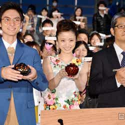 イベントには、俳優の高良健吾、朝原雄三監督も登壇。「時代劇でありながら、現代劇のように仕上げた」という朝原監督の演出を上戸は、「時代劇のルールやお作法は監督が現場で壊して下さいました。出来上がったときに、コミカルにプッと笑えるシーンになっていてすごいなって思いました」と絶賛した。