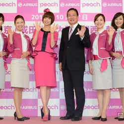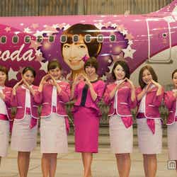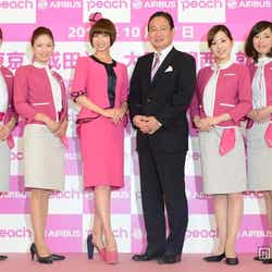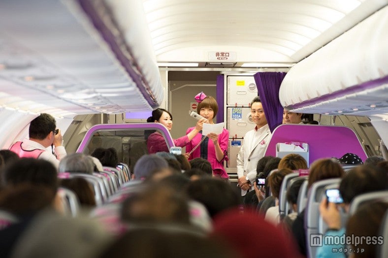格安航空会社Peach Aviationが27日、初の首都圏路線となる大阪(関西)―東京(成田)線の運航を開始。初便のMM111便には、Peach公認CA(=Company Ambassador)として元AKB48の篠田麻里子が搭乗した。