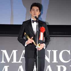 東出は埼玉県出身の25歳、身長189cm。特技は剣道、バスケットボール、サッカーというスポーツマンで、特に剣道は3段の腕前を誇る。高校時代に「第19回メンズノンノ専属モデルオーディション」でグランプリを獲得し、トップモデルとして「パリ・コレクション」の舞台を踏む。卒業後は大学に進学するも中退し、ジュエリーの専門学校へ。昨年8月に公開された映画「桐島、部活やめるってよ」をきっかけに俳優業を本格化させ、同作で「第36回日本アカデミー賞」新人俳優賞を受賞した。