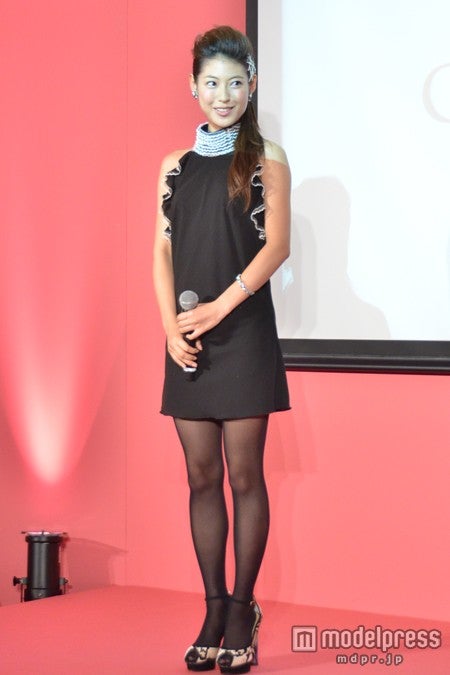フリルをポイントとした黒のタートルネックミニワンピから美脚を披露した瀧本。オールバックのヘアスタイルでまとめ、上品な雰囲気で登場した。