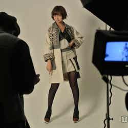 さまざまな時間・場所で、年賀状を作るというテーマを描くため、今回のCMで篠田が撮影したシチュエーションは、カフェ、ストリート、屋上、楽屋、ロケバスなど、エキストラカットを含めて全部で12ヶ所。その都度、衣装はもちろん、ヘアメイクも微妙に変えて、時間の経過を演出した。ファッションモデルとしても活躍する篠田だけに、どの場面のコーディネートもオシャレで、周りのギャラリーの目を引いていたが、最もインパクトが強かったのは、着物のシーン。ひと足早いお正月気分を満喫することとなったスタッフは、すっかり目を細めて、篠田の一挙手一投足を見守っていた。