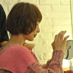 篠田が自分の方にスマートフォンを向けて、写真を撮っている屋上のシーンでは、自分の顔以外にも、こっそり監督やスタッフの様子を撮影。撮影後、「お仕事中、こんな感じでしたよ」とその写真を見せて、撮られた本人を驚かせるという一幕も。また、休憩中、近くで作業していたスタッフにカメラを向けた篠田は、そのスタッフが披露した変顔をパシャリ。気さくなキャラクターと茶目っ気あふれる仕草で、現場を明るく盛り上げていた。