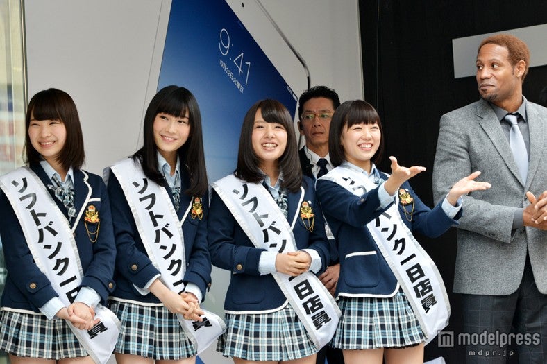 セレモニーには渡辺のほか、同社代表取締役副社長 兼 COOの宮内謙氏、白戸家のお父さん、タレントのダンテ・カーヴァー、NMB48の山田菜々・矢倉楓子・小笠原茉由も出席。宮内氏は「待ちに待った日がついにやってきました。おかげさまで『iPhone 5s/5c』(の主要量販店販売)シェア率でナンバーワン。LTEのネットワークも完成してきましたので、ぜひ最高な環境で『iPad Air』も楽しんでください」とアピールした。