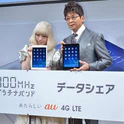 アーティストのきゃりーぱみゅぱみゅと俳優の哀川翔が1日、東京・渋谷のKDDIデザイニングスタジオにて行われた「KDDI iPad Air イベント」に出席した。