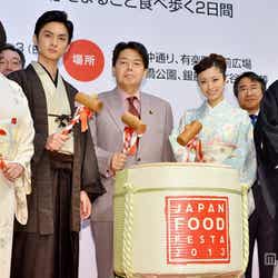 「武士の献立」がフードフェスタのオフィシャルサポーターを務めていることから、花柄の艶やかな和装でレッドカーペットを歩いた上戸は、農林水産大臣の林芳正氏から「EXILE PRIDE」とのデザインのミニフラッグを見せられ「先日、HIROさんのラストステージに行ってきました。素晴らしかったので、上戸さんにお伝えしたくて」と報告されると、「恥ずかしい」と赤面しながら「ありがとうございます」と手で顔をパタパタとあおぎ、夫・HIROの話題からのクールダウンを図っていた。