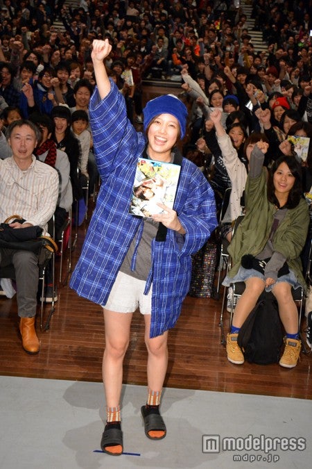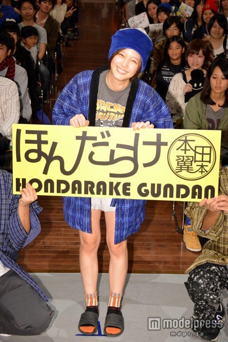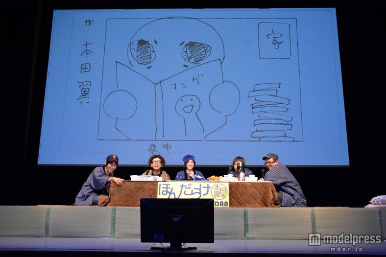 本田はこの日、布団をかぶった姿で登場。家の布団の中でマンガを読むときの姿勢を披露するなどファンとの交流を楽しんだが、ステージに設置されたこたつから出て布団の中に入る際、豪快にずっこけるという天然ぶり(?)を発揮し、大歓声を浴びた。本田は「ファンのみなさんと触れあうイベントは初めてで緊張していたのですけど、みんな優しい方々でよかったです」と照れ笑いを浮かべた。